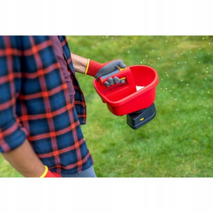 Lekki i poręczny rozsiewacz uniwersalny na baterię WOLF-Garten WE-B pozwala na szybkie i wygodne rozrzucanie płatków dekoracyjnych w systemach żywicznych oraz nasion, nawozu a nawet piasku i soli na powierzchni do 750 m². Wykonany z bardzo wytrzymałego i odpornego na działanie rozrzucanych preparatów.